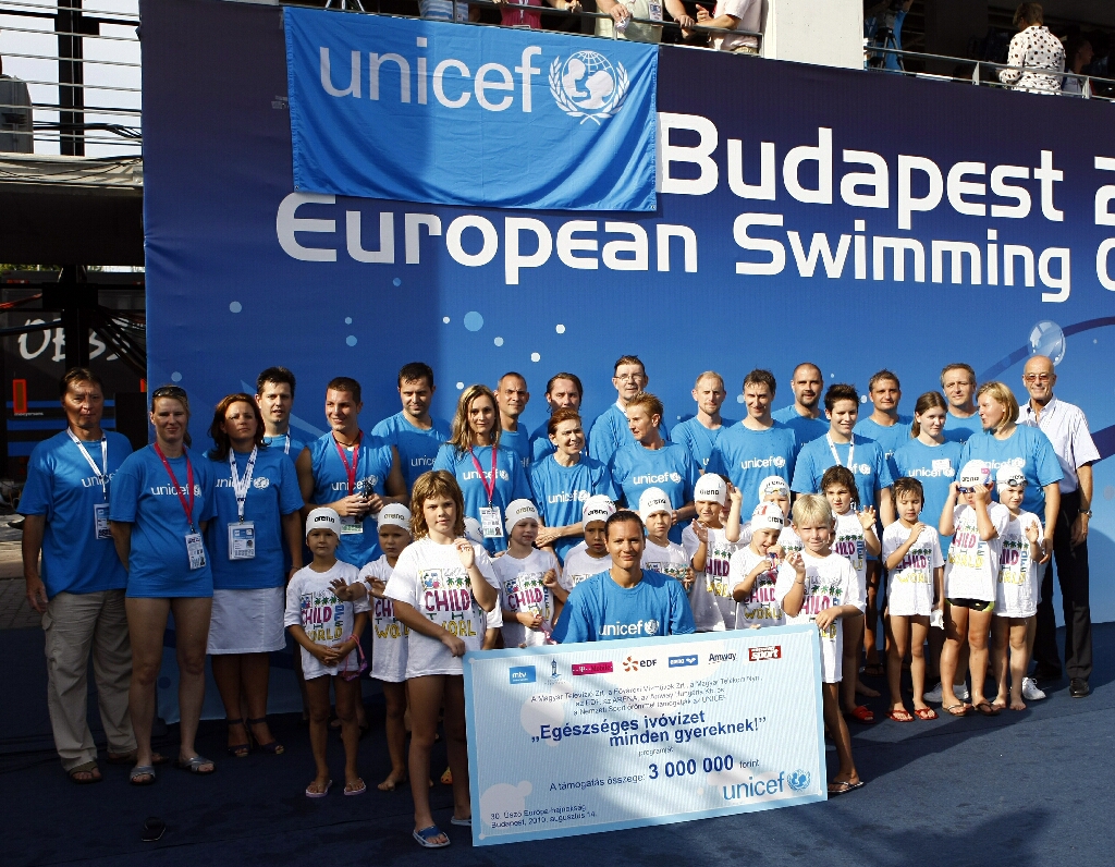 "A 2010-es budapesti Úszó Európa Bajnokságon jótékonysági váltóúszásra került sor az UNICEF javára. A váltóban 5-7 éves gyerekek és olimpikonok, világbajnoki helyezettek úsztak azért, hogy minden gyerek tiszta ivóvízhez jusson. Elismerés illeti Hegedüs Ágnes szakedzőt, aki tanítja és felkészítette a 16 apróságot, hogy az 50 méteres távot háton illetve gyorsúszásban teljesítsék."